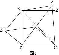 分析 (1)连接EC,如图1,易证△BCA∽△ECF,从而可得EF=$\sqrt{2}$AB=AD,易证△DBE≌△ABC,从而有DE=AC=AF,即可得到四边形ADEF是平行四边形;