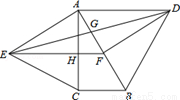 如图,分别以直角△ABC的斜边AB,直角边AC为边向△ABC外作等边△ABD和等边△ACE,F为AB的中点,DE与AB交于点G,EF与AC交于点H,∠ACB=90°,∠BAC=30°.给出如下结论: