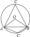 分析 根据等边三角形的性质得到∠AOB=60°,分点C在优弧AB上和点C在劣弧AB上两种情况,根据圆周角定理计算即可.