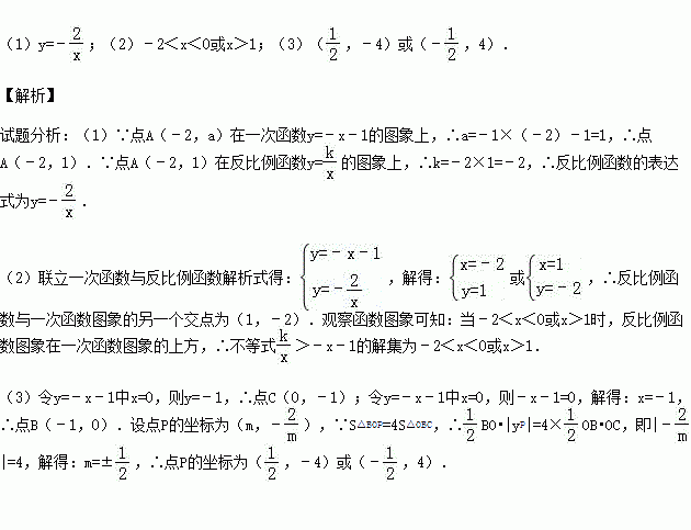 (3)若一次函数=﹣x﹣1与x轴交于点B,与y轴交于点C,点P是反比例函数y=