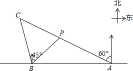 (2)小船从点P沿射线AP方向航行一段时间后,到C处,此时,从点B测得小船在北偏西15°的方向,求此时小船到观测点B的距离.(结果保留根号)