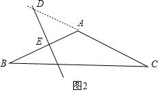 如图2,设AB的垂直平分线交AB于点E,交AC于点D,![]()