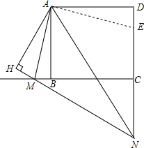 $\left\{\begin{array}{l}{AM=AE}\\{∠MAN=∠EAN}\\{AN=AN}\end{array}\right.$,![]()