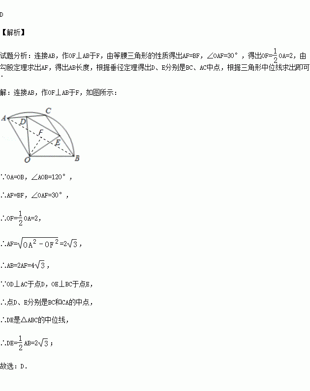 如图,在扇形OAB中,半径OA=4,∠AOB=120°,点C在