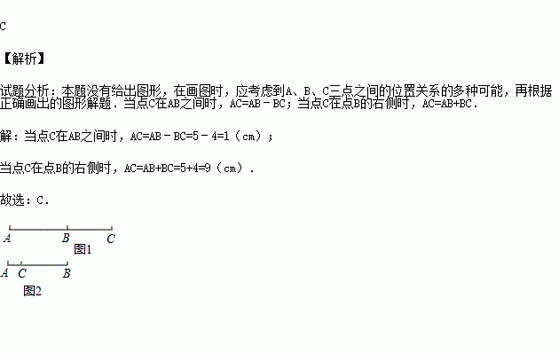 如果线段AB=5cm,BC=4cm,且A、B、C、D,在同一条直线上,那么A、C两点的距离是( )