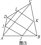 ②由$\frac{IJ}{BD}$+$\frac{JK}{AC}$=1,推出$\frac{JK}{AC}$=$\frac{1}{1+k}$,可得S△AIJ=($\frac{k}{1+k}$)2•S△ABD,S△CKL=($\frac{k}{1+k}$)2•S△BDC,S△DIL=($\frac{1}{1+k}$)2•S△ADC,S△BJK=($\frac{1}{1+k}$)2•S△ABC,根据四边形ABCD的面积是四边形IJKL面积的3倍,列出方程即可解决问题.
