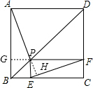 分析 过P作PG⊥AB于点G,根据正方形对角线的性质及题中的已知条件,证明△AGP≌△FPE后即可证明①AP=EF;④∠PFE=∠BAP;在此基础上,根据正方形的对角线平分对角的性质,在Rt△DPF中,DP2=DF2+PF2=EC2+EC2=2EC2,求得⑤DP=$\sqrt{2}$EC.