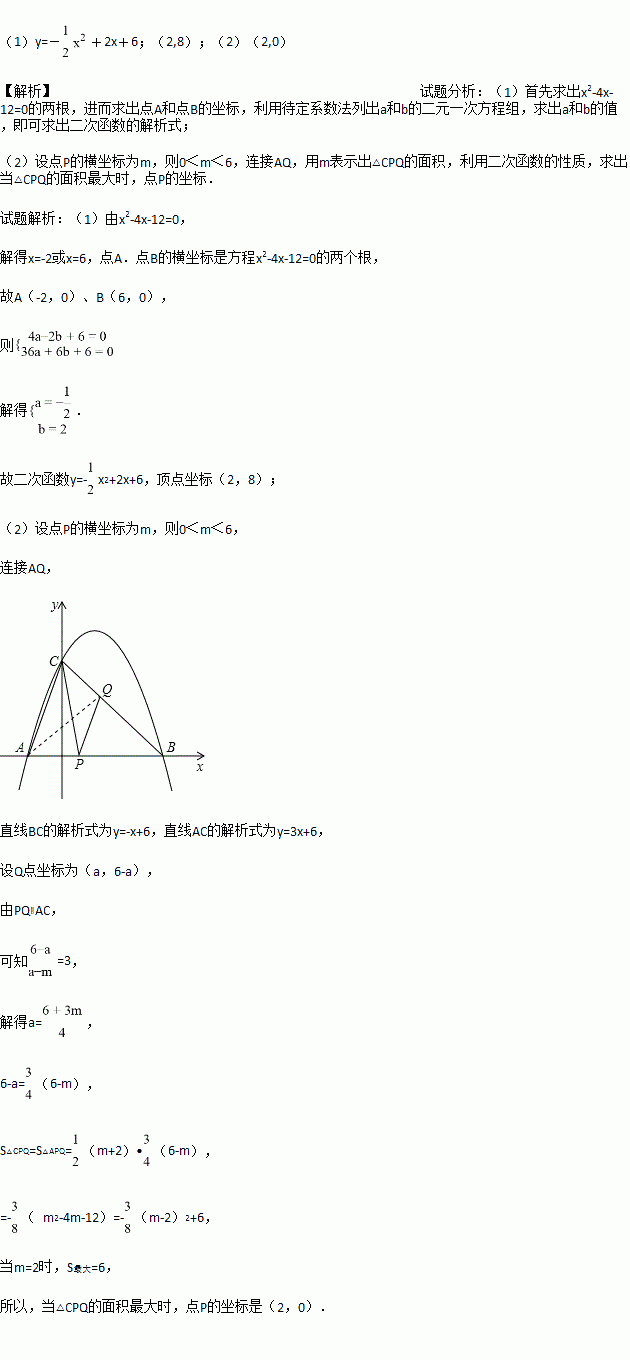 已知:二次函数y=ax2+bx+6(a≠0)的图象与x轴交于A、B两点(点A在点B的左侧),点A、点B的横坐标是方程x2-4x-12=0的两个根.