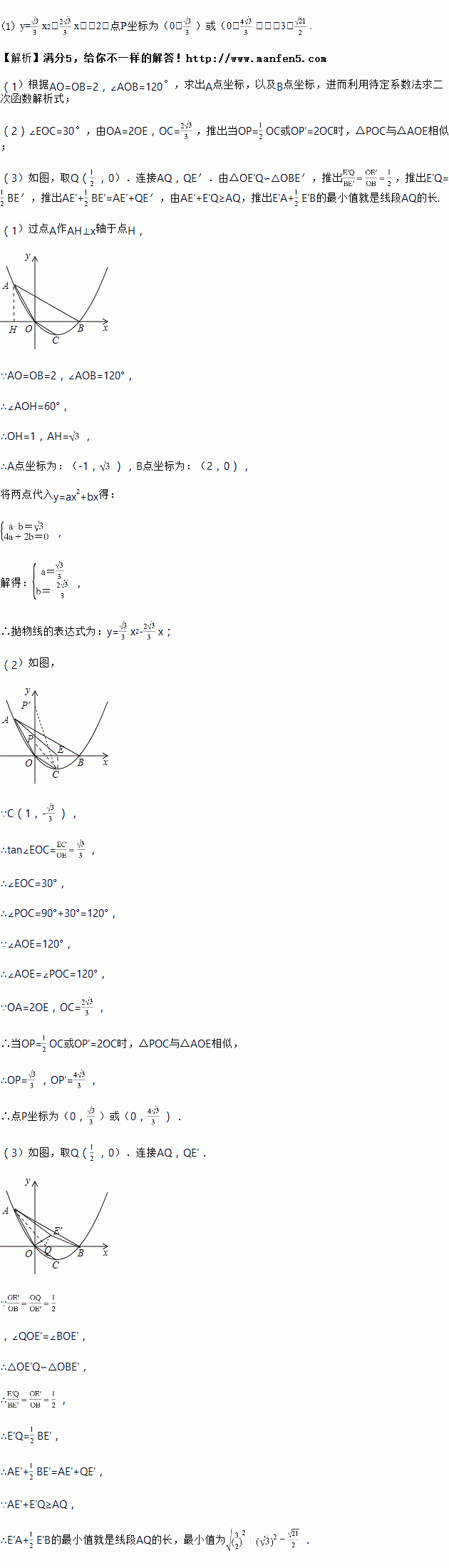 (2)过点C作CE⊥OB,垂足为E,点P为y轴上的动点,若以O、C、P为顶点的三角形与△AOE相似,求点P的坐标;