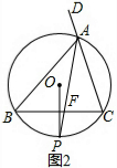 (2)连结AP交BC于F,根据垂径定理得到$\widehat{BP}$=$\widehat{CP}$,则∠BAP=∠CAP,所以AF为△ABC的角平分线;