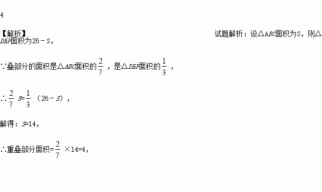 ,且△ABC与△DEF面积之和为26,则重叠部分面积是____.