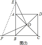 ·ÖÎö £¨1£©Èçͼ¢Ú£¬¸ù¾ÝÕý·½ÐεÄÐÔÖʵõ½BC=$\frac{\sqrt{2}}{2}$AC£¬Í¨¹ýÈ«µÈÈý½ÇÐΡ÷EOB¡Õ¡÷FOC£¨ASA£©µÄÐÔÖʵõ½£ºBE=CF£¬ÔòÒ×µÃBC=CF+BF=BE+BF£¬¹ÊBE-BF=$\frac{\sqrt{2}}{2}$AC£®