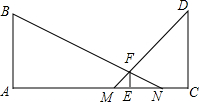 如图所示,晚上小亮走在大街上,他发现当他站在大街上高度相等的两盏路灯AB和CD之间时,自己右边的影子NE的长为3m,左边的影子ME的长为1.5m,又知小亮的身高EF为1.80m,两盏路灯AC之间的距离为12m,点A、M、E、N、C在同一条直线上,问:路灯的高为多少米?