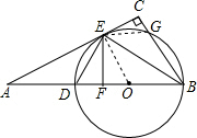 分析 (1)连接OE,由于BE是角平分线,则有∠CBE=∠OBE;而OB=OE,就有∠OBE=∠OEB,等量代换有∠OEB=∠CBE,那么利用内错角相等,两直线平行,可得OE∥BC;又∠C=90°,所以∠AEO=90°,即AC是⊙O的切线;