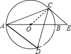 分析 连接OC,由AD=CD知求∠DAC可求∠D度数,而∠D=$\frac{1}{2}$∠AOC,根据OC与⊙O相切且∠E=50°知∠COE=40°即∠AOC=140°,求得.