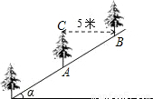 精英家教网如图,先锋村准备在坡角为α的山坡上栽树,要求相邻两树之间的水平距离为5米,那么这两树在坡面上的距离AB为(  )