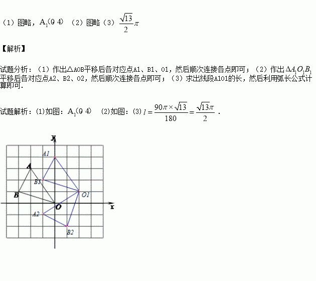 (1)画出△AOB沿x轴向右平移2个单位并向上平移1个单位后得到的