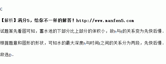 如图,是某蓄水池的横断面示意图,蓄水池分为深水区和浅水区,如果向这个蓄水池以固定的速度注水,下面能表示水的深度h与时间t的关系的图象大致是( )