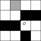 如图,是4×4正方形网格,请在其中选取一白色的小正方形并涂黑,使图中黑色部分形成一个中心对称图形,并在图中用O点标出对称中心.