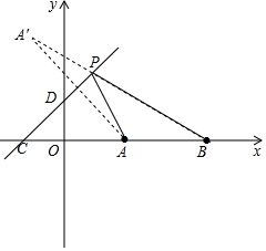 分析 根据已知条件得到C(-2,0),D(0,2),∠DCO=45°,一次函数的解析式为y=x+2,作A关于直线y=x+2的对称点A′,得到AA′⊥CD,PA+PB的最小值=A′B,求得A′(-2,6),直线A′B的解析式为y=-$\frac{1}{2}$x+5,列方程组得到P(2,4),根据勾股定理即可得到结论.
