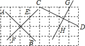 分析:一个格点向右两个单位,再向下两个单位,然后连接这两个格点的线段即为与AB、CD垂直的线段.