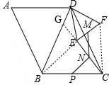 分析 首先连接BE、CF,延长CE交BD于点G,根据三角形的中位线定理,判断出∠MNE=∠FCE=∠FCD+∠DCEM,∠ENP=∠BEG;然后根据全等三角形判定的方法,判断出△BDE≌△∠CDF,即可判断出∠DBE=∠DCF;最后根据三角形的外角的性质,以及三角形的内角和定理,判断出∠ABD+∠MNP=180°即可.
