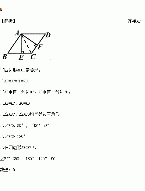 菱形ABCD中,如图,AE⊥BC于E,AF⊥CD于F,若BE=EC,则∠EAF=( )