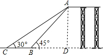 分析 根据AB长为4米,∠ABD=45°,求出AD、BD的长度,然后根据∠ACD=30°求出AC、CD的长度,由BC=CD-BD求出BC.