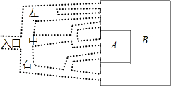 近几年“密室逃脱俱乐部”风靡全球.下图是俱乐部的通路俯视图,小明进入入口后,任选一条通道.