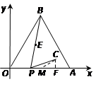 Èçͼ£¬±ß³¤Îª4µÄµÈ±ß¡÷AOBµÄ¶¥µãOÔÚ×ø±êԵ㣬µãAÔÚxÖáÕý°ëÖáÉÏ£¬µãBÔÚµÚÒ»ÏóÏÞ.Ò»¶¯µãPÑØxÖáÒÔÿÃë1¸öµ¥Î»³¤¶ÈµÄËÙ¶ÈÓɵãOÏòµãAÔÈËÙÔ˶¯£¬µ±µãPµ½´ïµãAʱֹͣÔ˶¯£¬ÉèµãPÔ˶¯µÄʱ¼äÊÇtÃë.ÔÚµãPµÄÔ˶¯¹ý³ÌÖУ¬Ïß¶ÎBPµÄÖеãΪµãE£¬½«Ïß¶ÎPEÈÆµãP°´Ë³Ê±Õë·½ÏòÐýת60ºµÃPC.