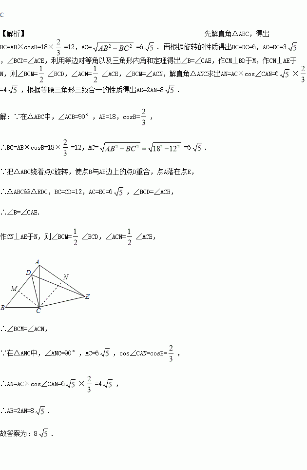 ,把△ABC绕着点C旋转,使点B与AB边上的点D重合,点A落在点E处,则线段AE的长为( )