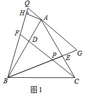 分析 (1)如图1,易证△BDC≌△AEB,则有∠DCB=∠EBA,由此可推出∠FPG=120°,易证△BFC≌△AGB,则有∠BFC=∠AGB,由此可得到∠AGB+∠HFP=180°,在五边形AHFPG中,由五边形的内角和为540°可求出∠GAH=150°,即可证到∠GAH=∠BPC+30°;