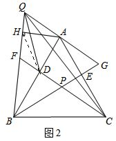 (2)连接HD,如图2,易证$\frac{QH}{QA}$=$\frac{HD}{AC}$=$\frac{1}{2}$,∠QHD=∠QAC,则有△QHD∽△QAC,然后根据相似三角形的性质就可得到QD=$\frac{1}{2}$QC.