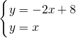 一次函数y=-2x+b与x轴交于(4,0),则它与y轴的交点为________,与直线y=x的交点坐标为________