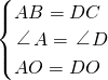 如图,已知AB=DC,OA=OD,∠A=∠D.问∠1=∠2吗?试说明理由.