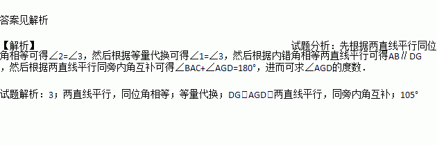 如图,EF∥AD,∠1=∠2,∠BAC=75°,将求∠AGD的过程填写完整.