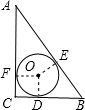 解答:解:如图,⊙O内切于直角△ABC中,切点分别为D、E、F;