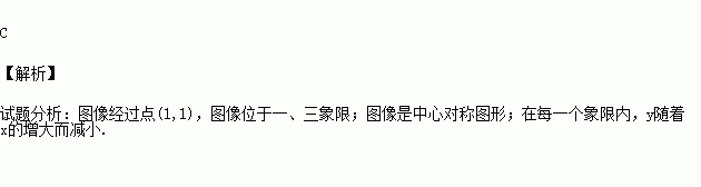 A.图象经过点(1,-1) B.图象位于第二、四象限