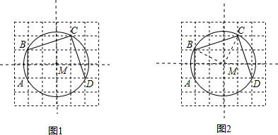 (1)请画出四边形ABCD的外接圆,并标明圆心M的位置;