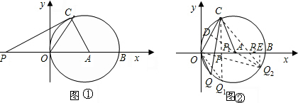 ②过A作AD⊥OC,垂足为D,延长DA交⊙A于Q2,CQ2与x轴交于P2;如图②,