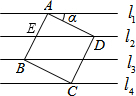∵l1∥l23∥l4,相邻两条平行直线间的距离都是1,