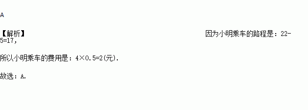 另外,一卡通刷卡实行5折优惠,小明用一卡通乘车上车时站名上对应的数字是5,下车时站名上对应的数字是22,那么小明乘车的费用是( )