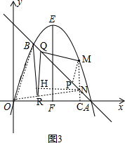 (3)如图3,作NH⊥QR于点H,MP∥OB交AB于点P,