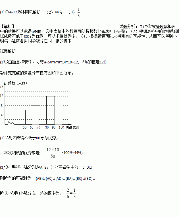 (2)若测试成绩不低于80分为优秀,则本次测试的优秀率是