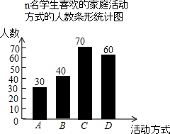 18.在“世界家庭日”前夕,某校团委随机抽取了n名本校学生,对“世界家庭日”当天所喜欢的家庭活动方式进行问卷调查.问卷中的家庭活动方式包括: