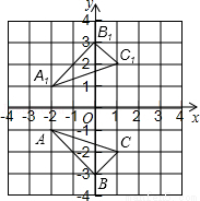 在如图的平面直角坐标系中,已知点A(-2,-1),B(0,-3),C(1,-2),请在如图上画出△ABC和与△ABC关于x轴对称的△A1B1C1.