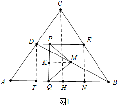 解答 解:(1)如图1中,作DT⊥AB于T,EN⊥AB于N,CH⊥AB于H,MK⊥PQ于K,则四边形DENT是矩形,![]()