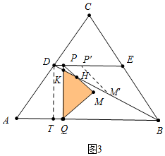 分析 (1)如图1中,作DT⊥AB于T,EN⊥AB于N,CH⊥AB于H,MK⊥PQ于K,则四边形DENT是矩形,当点M在BD上时,由PK=KQ,KM∥AB,推出DM=MB,易知KM=PK=KQ=2,DP=2,由此即可解决问题.