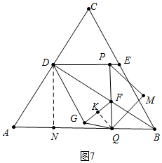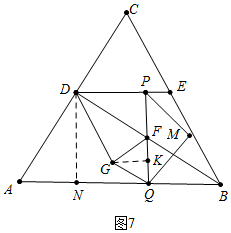 ②如图7中,当GF=GQ时,作GK⊥PQ,DN⊥AB于N.![]()