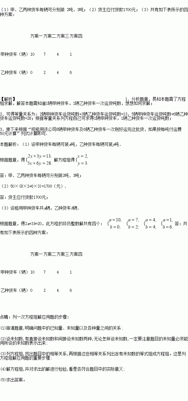 (1)甲、乙两种货车每辆可装多少吨货物?